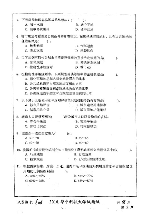 2002-2014华中科技大学考试城市规划原理608半岛在线注册试题(14)