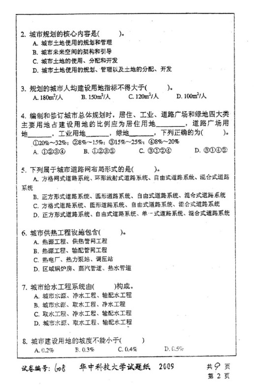 2002-2014华中科技大学考试城市规划原理608半岛在线注册试题(7)