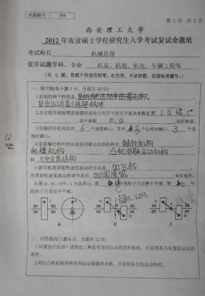 2009-2013年西安理工大学机械原理509半岛在线注册复试真题试题(8)