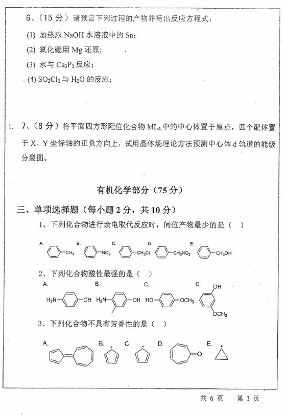 武汉大学2012年无机化学和有机化学B650半岛在线注册试题(3)
