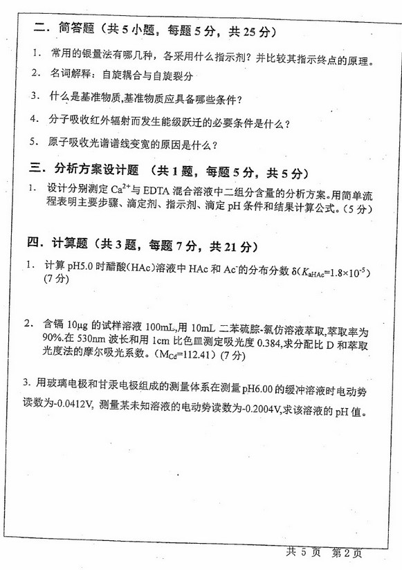 武汉大学2012年分析化学与物理化学D880半岛在线注册试题(2)