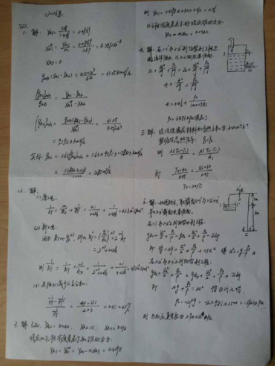 武汉大学2003到2013年化工原理半岛在线注册真题计算题详细答案手写版(12)