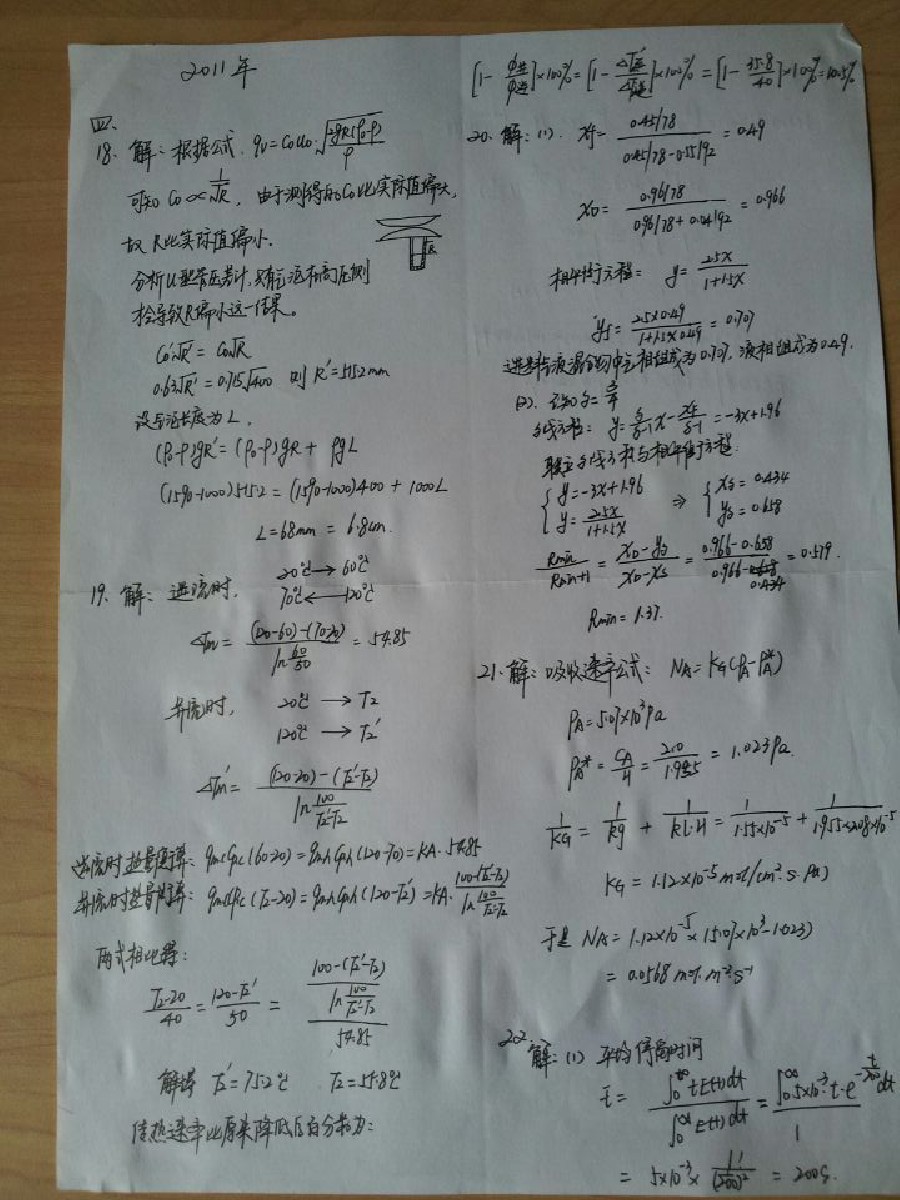 武汉大学2003到2013年化工原理半岛在线注册真题计算题详细答案手写版(14)