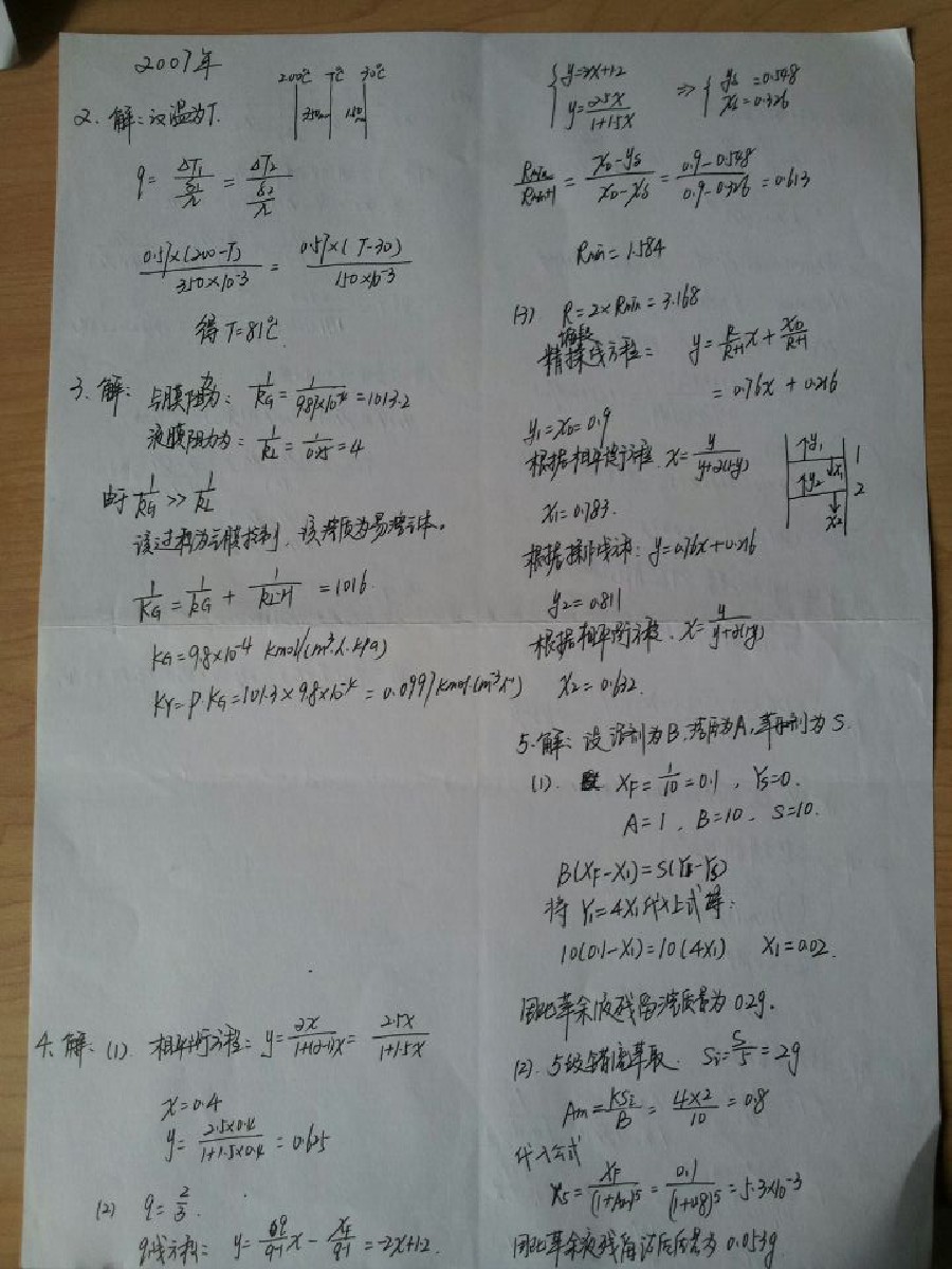武汉大学2003到2013年化工原理半岛在线注册真题计算题详细答案手写版(6)