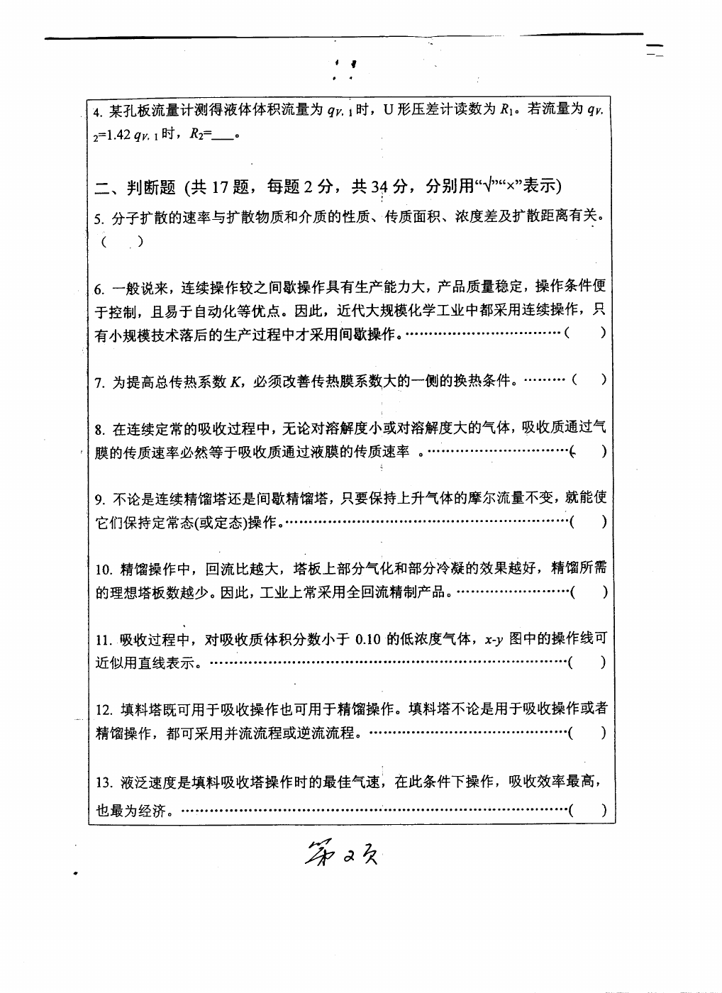 2008-2009武汉大学化工原理半岛在线注册真题(10)