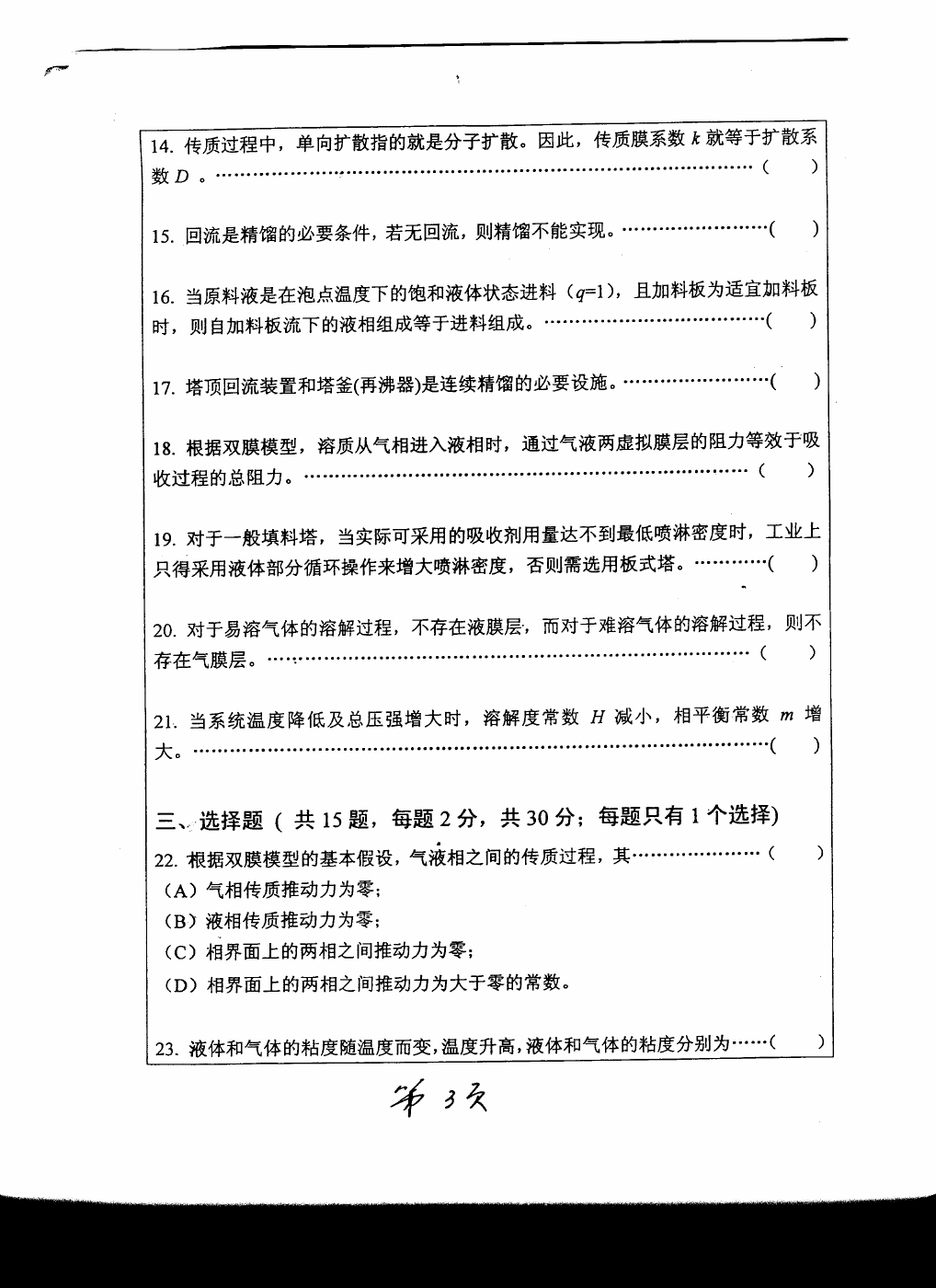 2008-2009武汉大学化工原理半岛在线注册真题(11)