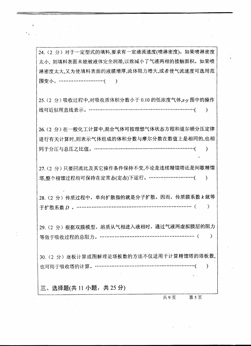 2007年,2010年,2012年武汉大学化工原理半岛在线注册真题(18)