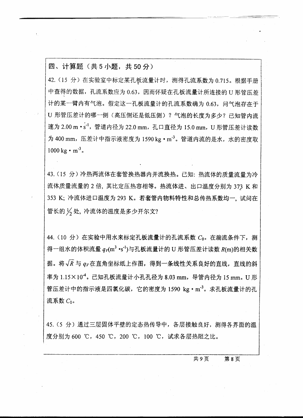 2007年,2010年,2012年武汉大学化工原理半岛在线注册真题(21)