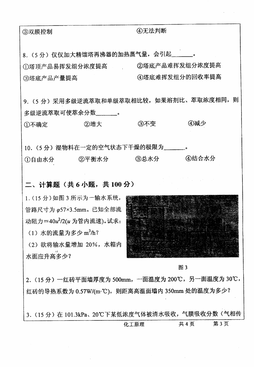 2007年,2010年,2012年武汉大学化工原理半岛在线注册真题(3)