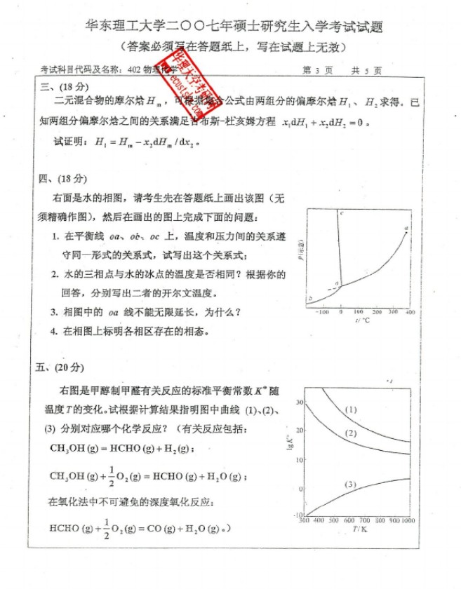 华东理工大学物理化学2007研究生半岛在线注册试题(3)