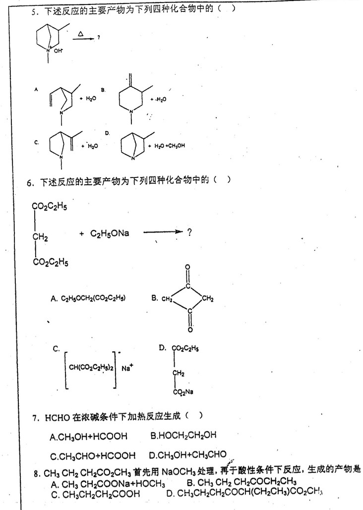 2007-2010年四川大学890有机化学硕士研究生半岛在线注册考试真题(10)
