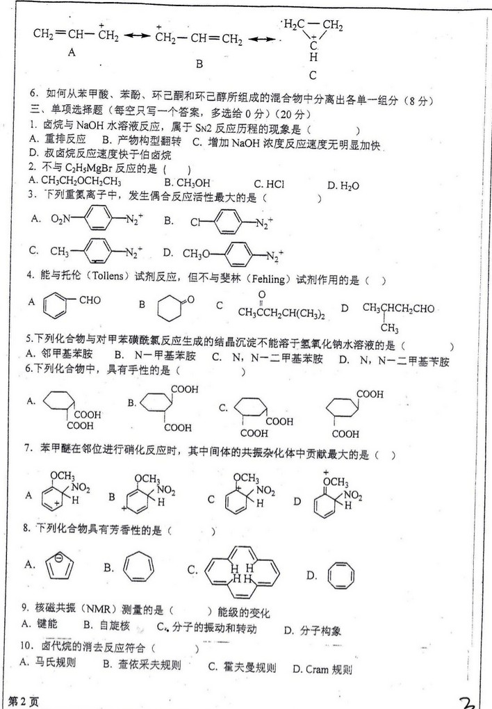 2007-2010年四川大学890有机化学硕士研究生半岛在线注册考试真题(13)