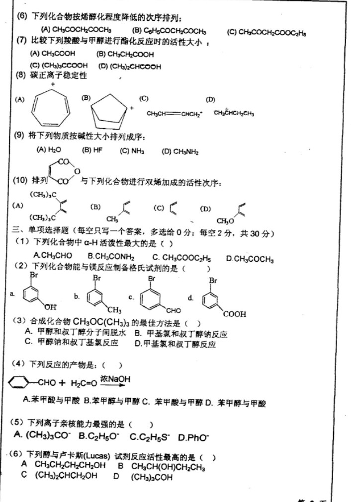2007-2010年四川大学890有机化学硕士研究生半岛在线注册考试真题(3)