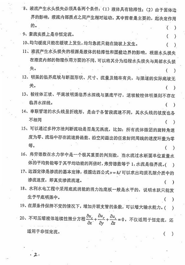 2014年四川大学876水力学半岛在线注册真题(2)