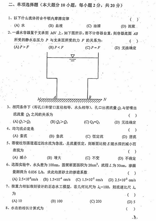 • 2010年安徽建筑大学水力学半岛在线注册真题