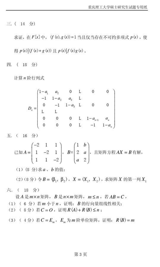 2015年重庆理工大学818高等代数半岛在线注册真题(3)
