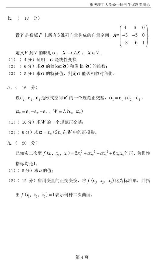 2015年重庆理工大学818高等代数半岛在线注册真题(4)