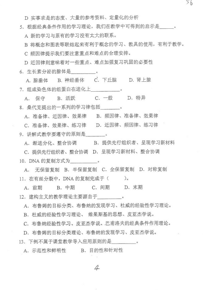 2014年西北师范大学640生物教育综合半岛在线注册试题(4)