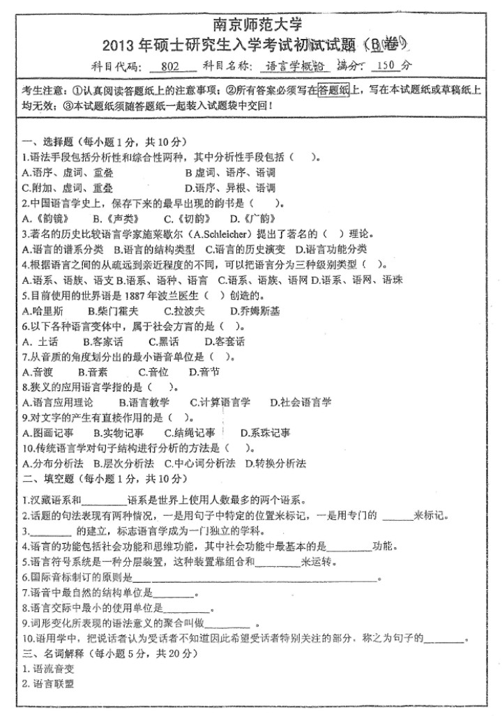2013-2016南京师范大学语言学概论802半岛在线注册真题(7)