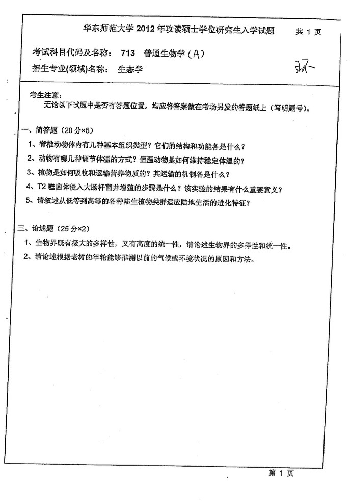 2010-2015华东师范大学713普通生物学A历年半岛在线注册真题(3)