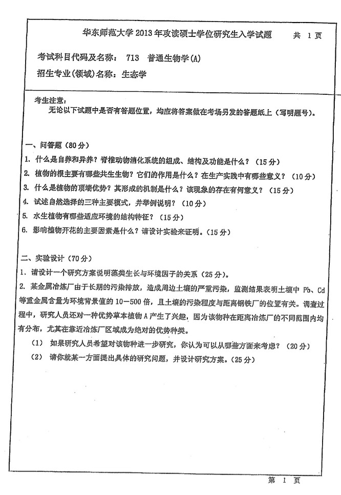 2010-2015华东师范大学713普通生物学A历年半岛在线注册真题(4)