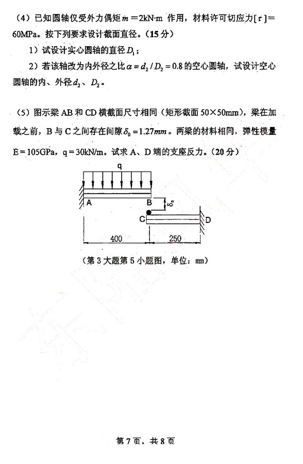 2014年云南大学853材料力学半岛在线注册试题(7)