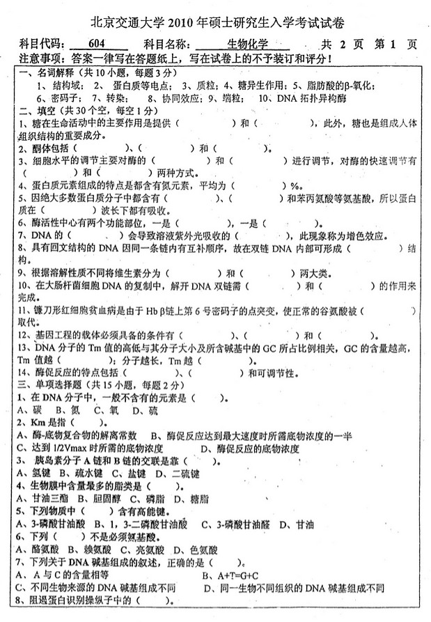 2008-2011北京交通大学617生物化学历年半岛在线注册真题(8)
