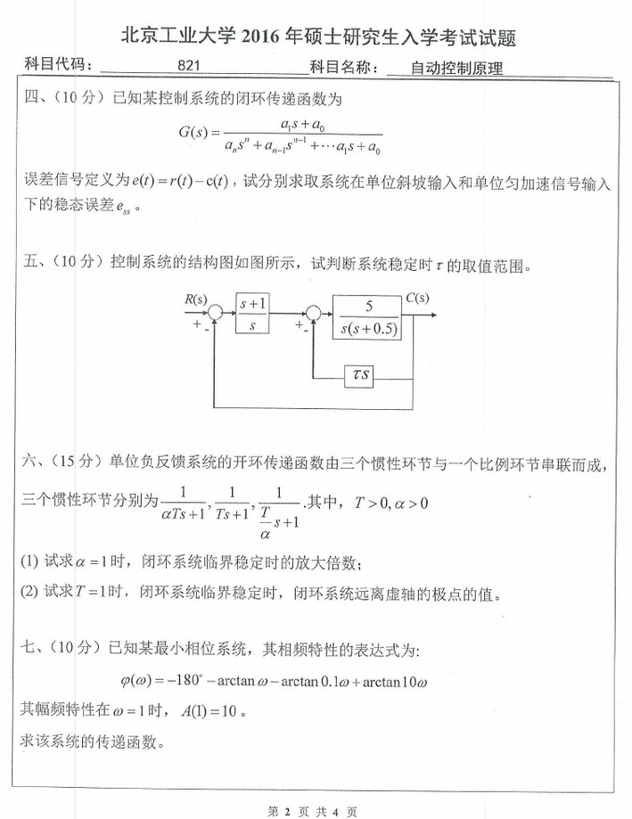 2016年北京工业大学821自动控制原理半岛在线注册试题(2)