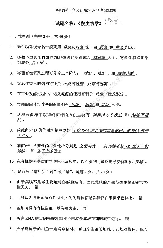南开大学2011,2006-2004微生物学810半岛在线注册试题(13)