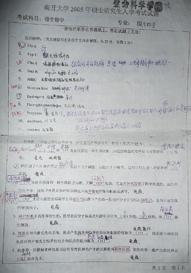 南开大学2011,2006-2004微生物学810半岛在线注册试题(4)