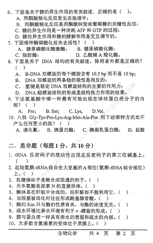 南开大学2011-2010,2006-2004生物化学711半岛在线注册真题(15)