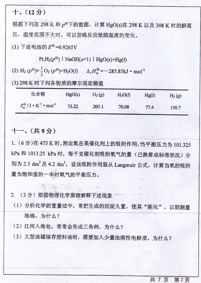 武汉大学2011-2010分析化学与物理化学882半岛在线注册真题(13)