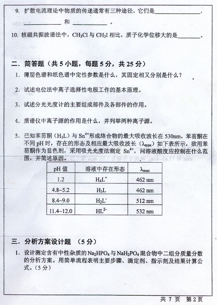 武汉大学2011-2010分析化学与物理化学882半岛在线注册真题(8)