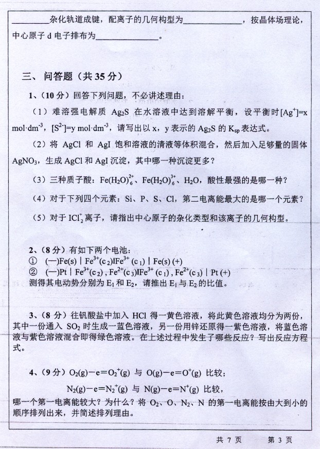 武汉大学2011-2010无机化学和有机化学636半岛在线注册真题(11)