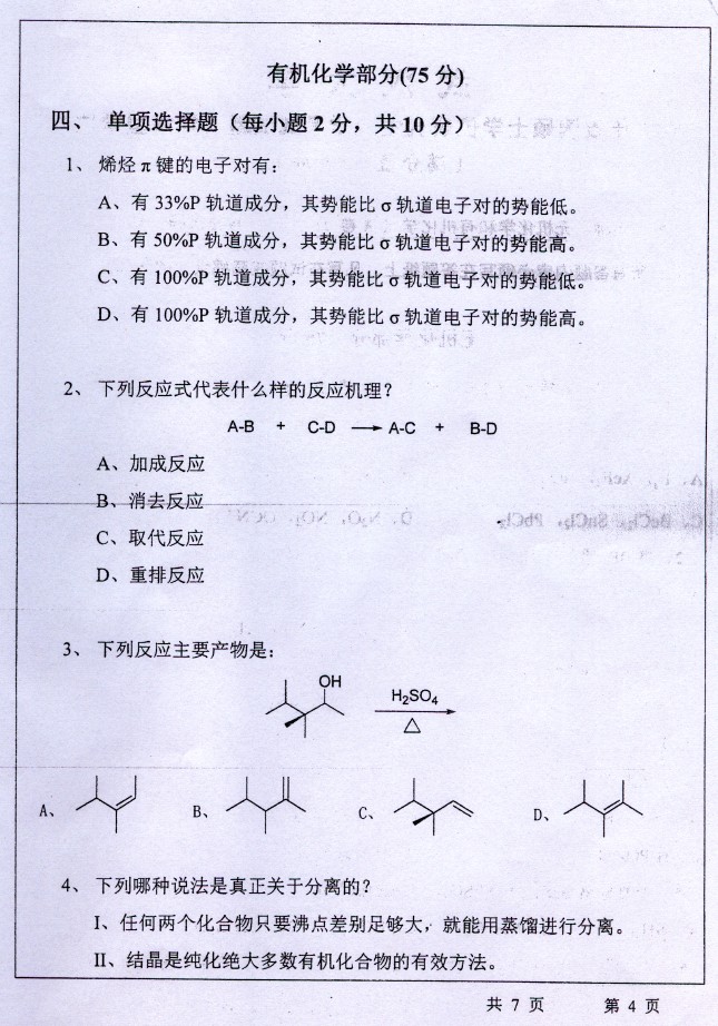武汉大学2011-2010无机化学和有机化学636半岛在线注册真题(12)