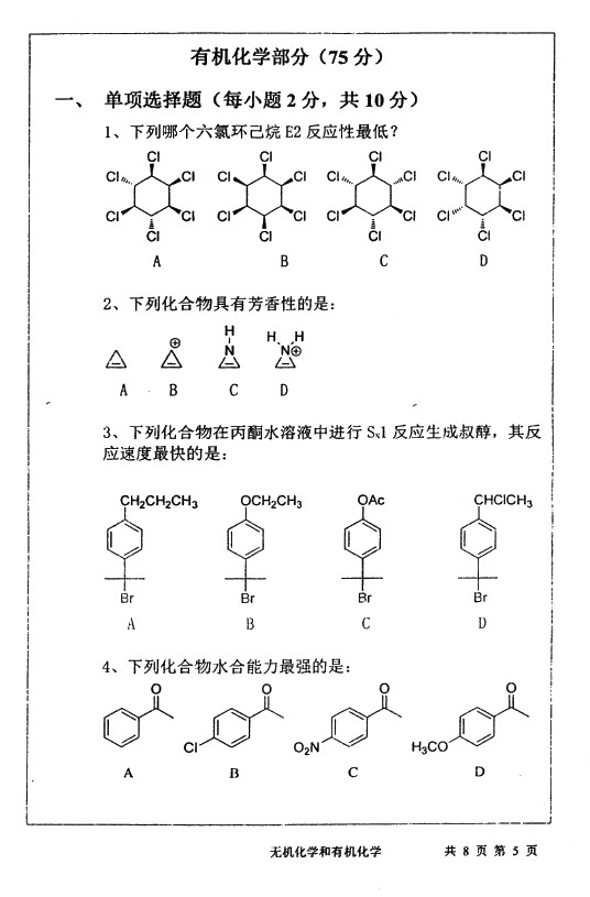 武汉大学2011-2010无机化学和有机化学636半岛在线注册真题(5)