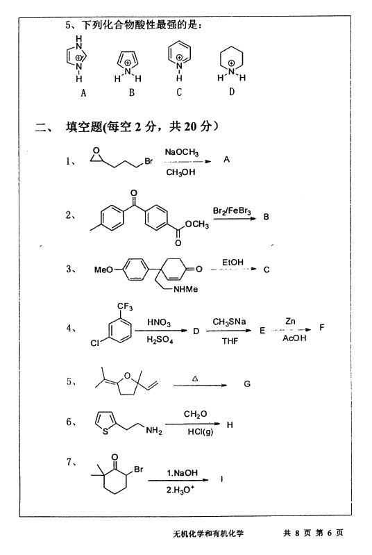 武汉大学2011-2010无机化学和有机化学636半岛在线注册真题(6)
