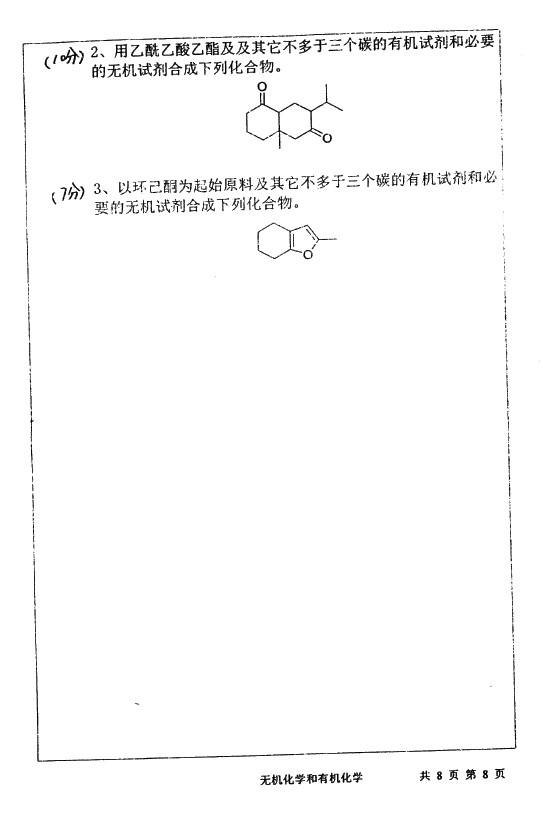 武汉大学2011-2010无机化学和有机化学636半岛在线注册真题(8)