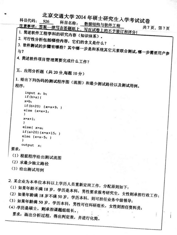 2014年北京交通大学数据结构与软件工程926半岛在线注册真题(7)