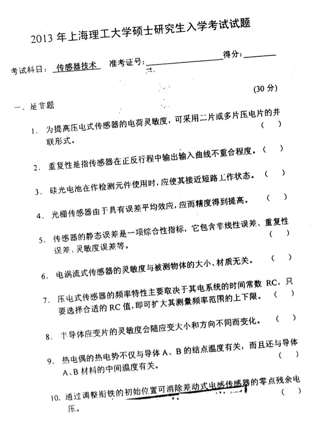 2013年上海理工大学传感器技术808半岛在线注册真题半岛在线注册试题
