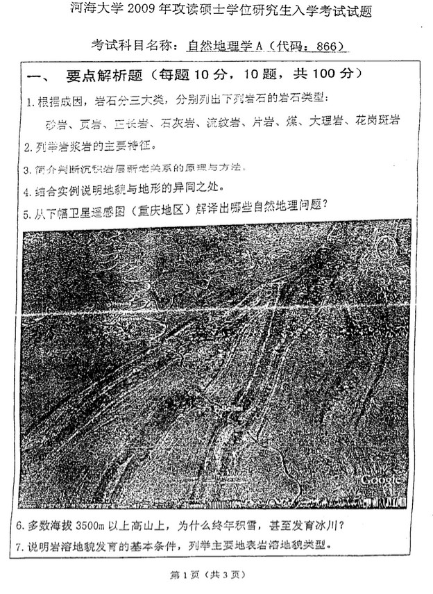 2009年河海大学466自然地理学半岛在线注册试题