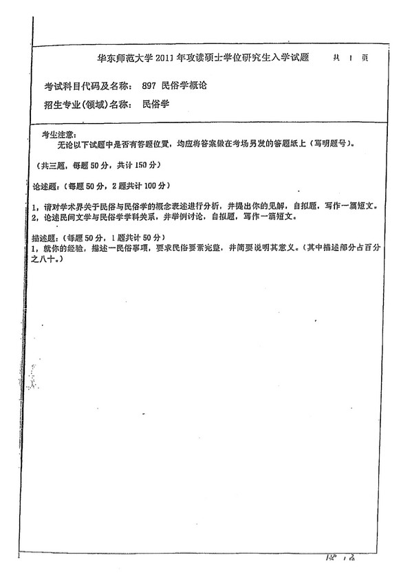 华东师范大学2011-2015民俗学概论897半岛在线注册真题(5)