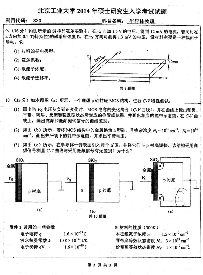 2014年北京工业大学823半导体物理半岛在线注册真题(3)