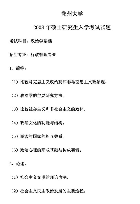 2006-2014郑州大学817政治学基础历年半岛在线注册真题(2)