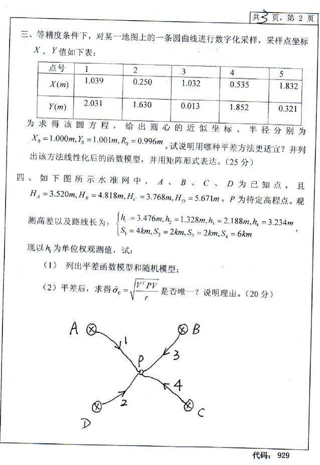 2011年中南大学测量平差基础929半岛在线注册真题(2)
