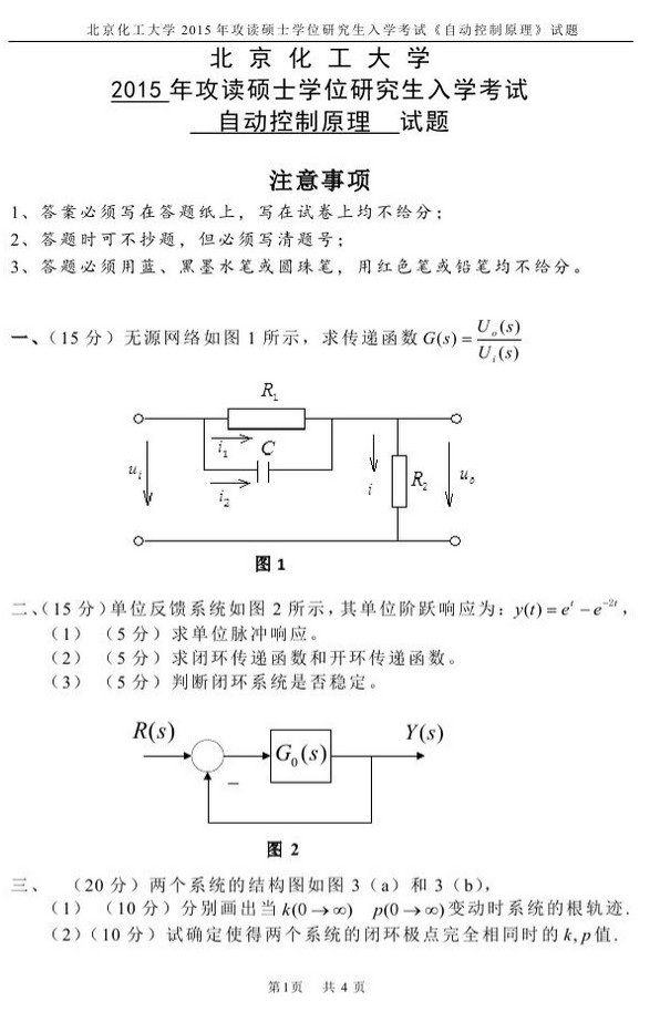 2015年北京化工大学自动控制原理半岛在线注册真题