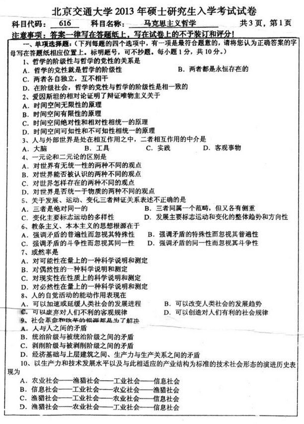 2013年北京交通大学马克思主义哲学半岛在线注册真题