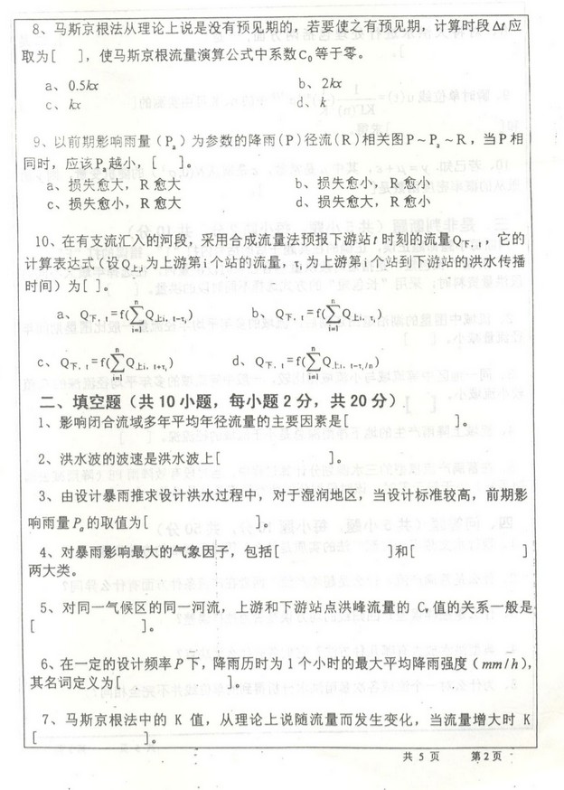 2011年武汉大学903工程水文学半岛在线注册真题(2)