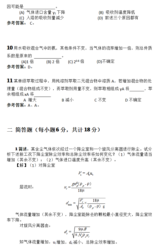 2016年华东理工大学化工原理半岛在线注册试题(3)