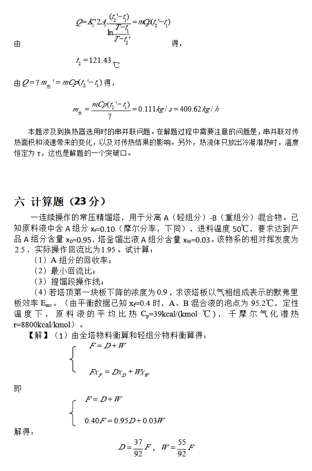 2016年华东理工大学化工原理半岛在线注册试题(9)